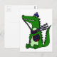 Funny green alligator is playing the bagpipes in this fun original art design.