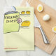 Funny Baker Loaves of French Bread Cartoon Art Kitchen hand towel for anyone who loves baking homemade bread or just eating it. Towel depicts baker passing time with his favourite magazine while his crusty creation bakes in the oven..