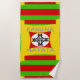 The colour palette of red, golden, and green is carefully selected to evoke a sense of fun and vibrancy. These lively hues not only complement the beach environment but also ensure that you stand out with a towel that radiates positivity and energy.