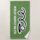 Funny beach towel gift for golf enthusiast. World's Okayest Golfer. Personalized towel for golfing fan, team, friends, mom, dad, coach, kids, husband, wife, coworker, colleague, company boss etc. Cool Birthday gift idea for him or her. Also nice for pool party or summer vacation. Letters can be spaced out evenly. Add your own name or humourous quote. Green or custom background colour. Cute design with ball and putt hole.