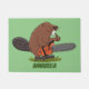 Funny beaver with chainsaw cartoon humour doormat