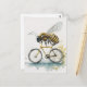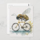 Funny bee riding a bicycle watercolor drawing, bee postcard