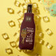 This funny beer brewer foam bottle hugger / cooler design is perfect for a woman who loves home brewing or works at a brewery / microbrewery. It shows a keg cartoon lady with legs and gloves, alongside the words, "She's got kegs and she knows how to brew 'em." The background is reddish-brown.