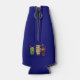 The Three Muskebeers: All for beer and beer for all! This foam bottle hugger / cooler design features a cartoon beer can, mug and bottle all carrying swords and donning feathers, hats and boots. The background is blue. It's funny wordplay for the beer fan. The full design appears on the front and the three cartoon beers appear smaller on the bottom of the back, too.