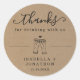 Funny Beer Wedding Thank You / Thanks Sticker with a rustic kraft background - A cute sticker for your wedding favours.