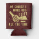 This funny foam beer can cooler / hugger / cozy shows a grungy image of a hand holding a cold beer bottle with the words, "Of Course I Work Out - I Lift Beer All the Time" done in a light beer colour. The background is a darker brown colour with bubbles. The design repeats on the back.