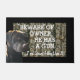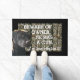 A funny welcome doormat featuring the text "Beware of Owner. He Has A Gun. I've Seen Him Use It! " This design features a camouflage background with a black border. It's perfect for a hunter and his bird dog.