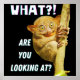 Funny Tarsier design that says "What are you looking at?"