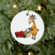 Funny Billy Goat Pushing Lawn Mower Cartoon Ceramic Ornament