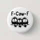 A humorous black-and-white graphic design showcases three black bird silhouettes perched on a wire, each with exaggerated big eyes. The handwritten black text humorously reads: "F-Caw-F." This quirky design is available on various products, making it a perfect gift for bird enthusiasts and fans of sarcastic humor alike.
