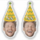 Celebrate any birthday with laughs! This hilarious custom sticker features a face photo wearing a fun yellow party hat with the age on it. Easily personalize it with your picture and number — perfect for milestone birthdays like 17, 19,35, 45, 55... and more! Great for party favours, decorations, or gifts. Edit using the design tool to upload a clear face and change the age. Make any celebration unforgettable!