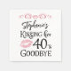 Funny Birthday Kissing A Decade Goodbye Custom Party Paper Napkins. Celebrate a birthday beginning a new decade with these funny party napkins featuring an editable age modern typography design for the saying NAME'S KISSING HER "DECADE" GOODBYE (the sample shows 40s for a 50th birthday). CHANGES: The personalized text font style, colour, size and placement as well as the graphics and background colours can be changed to coordinate with your party theme colours (shown in pink and black). NAPKIN OPTIONS: The sample is shown in the 4.75x4.75-inch Cocktail size on white--other sizes and napkin paper colours are available on the ordering page. ASSISTANCE: For help with design modification or personalization, colour change, resizing, transferring the design to another product or you would like coordinating items, contact the designer BEFORE ORDERING via Zazzle Chat or makeitaboutyoustore@gmail.com.