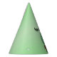 This paper party hat is green with with a funny man with a big green pickle for a head with a surprised looking face wearing a brown suit. Customize the Happy Birthday text with the template.