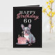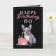 Funny Black and Pink Bulldog Husband Birthday, a funny and cool design made for anyone looking for a unique birthday card for their husband on their birthday. The design is eye-catching, it features a cute french bulldog with a birthday cake, plus editable text information.