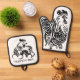 Funny Black and White Chicken Oven Mitt & Pot Holder Set