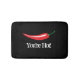Funny black bathmat with red hot chili pepper icon. Spicy food design with vintage typography template. Add your own personalized name, monogram or humourous quote / saying. Cute gift idea for new home. Suitable for men and women. Custom rug for bathroom or wet room.
