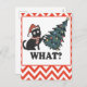 Funny Chat Noir Arbre de Noël. Mignonne chatte noire poussant le sapin de Noël, quoi ?