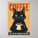 Funny Black Cat Coffee Art - Coffee Because Murder Poster
