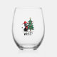 Funny Black Cat Gift Pushing Christmas Tree Over C Stemless Wine Glass
