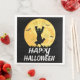 Great for Halloween parties at school or any family-friendly event. Black cat hanging on to the moon.