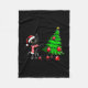 Funny Black Cat Pushing Christmas Tree Over Cat Wh Fleece Blanket