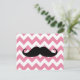 A funny black moustache and girly pink chevron pattern background.A cool retro design with a geek 80s funny moustache me a question. A perfect humour gift for her