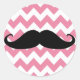 Funny Black Moustache And Pink Chevron Pattern Classic Round Sticker