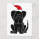 Fun cute black Newfoundland puppy dog wearing Santa hat Christmas original art. Can also add custom text and change background colour when ordering.