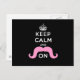 Funny Black, Pink Keep Calm and Moustache On Postcard