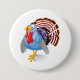 Funny Blue Cartoon Turkey with Patriotic Feathers 3 Inch Round Button