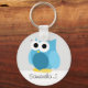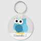 Cute custom keychain featuring an illustration of a blue owl and personalized with your name or text. Great for owl lovers, as a gift, or can be given as party favours at a baby shower.