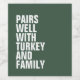 Want to know what this wine pairs well with? Turkey and family. Nothing goes better with family than wine. This funny wine label that can be customized with your own wording ( like "pairs well with in-laws" or "pairs well with lumpy mashed potatoes") matches the modern Thanksgiving invitation suite by Lea Delaveris Design. The green background colour can be changed by clicking "Customize."