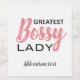Add some humour to your boss's holiday, birthday or other occasion with these Funny Boss Lady Typography Pink White Personalized Wine Labels. Customizable white bottle with funny phrase "Greatest bossy lady" followed by personalize name in trendy coral pink and black typography on white background.