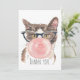Whimsical watercolor illustration features cat wearing funky retro style glasses blowing bubble gum. Definitely not your average floral / fancy thank you card - and yet it works so well for so many situations.