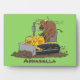 This bull is doing his own earth moving, driving a bulldozer in fun cartoon style.