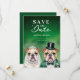 Funny Bulldog Wedding Couple Cartoon Save the Dates Cards in Green Shades.