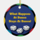 Colourful and fun Bunco ornament for your favourite Bunco player. What Happens At Bunco Stays At Bunco funny motto. Includes three lucky Bunco dice on this colour design.