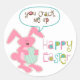 These cute stickers feature a bright pink bunny rabbit holding a teal green striped Easter egg. Above the bunny is a talk bubble that says You Crack Me Up. At the right side is colourful stylized text that says Happy Easter. Be sure to see the matching Easter products in our store. *Clip art used in this design is copyrighted by Encore Software, Inc., which permits use to its licensors. All rights reserved.