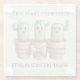 Let one and all know that you have a weakness for (even the prickliest) green growing things with this whimsical glass coaster, which features AI-generated artwork of cute potted baby cactuses rendered in soft pastel tones. Customize top and bottom messages as desired. A great gift idea for gardeners and horticulturists!