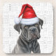 Fun coaster set for the person who loves their Cane Corso dog. This one wears a Santa hat for a stylish approach to the holiday season, and sits cutely against a faded WOOF background to decorate your home or office with seasonal pet lover joy.