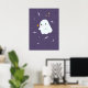 Funny cartoon cats with brooms, pumpkins and ghost poster