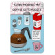 A magnet with a Funny coffee pun design that says "Every Morning My Coffee Gets Mugged" with a cartoon scene of a mug holding up a coffee pot in the kitchen with other coffee accessories as witnesses to the morning routine. The cup says to them all “Hand over the liquid gold and no one gets hurt!”. This magnet makes a cute gift for any coffee lover.