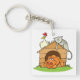Funny Cartoon Dog Cat and Chicken on Doghouse Keychain