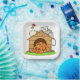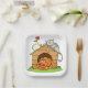 Funny Cartoon Dog Cat and Chicken on Doghouse Paper Plate