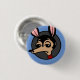 Funny dog graphic illustration round pin back button. Background colour can be customized.