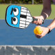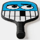 Funny cartoon face pickleball paddle with custom name initials. Cool Christmas or Birthday gift idea for pickleball lovers. Create unique paddles for player, fan, sports coach, team, mom, dad, friend, husband, wife, boyfriend, girlfriend, coworker, kids etc. Personalize with your own name, colours and monogram. Professional quality athletic game rackets for sporty men and women. Black trim colour example. White, tan or black grip / trim options. Funniest pickleball racket ever!