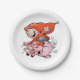 Funny Cartoon Gnome Riding Flying Pig Paper Plate