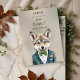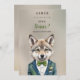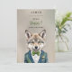 The young wolf sports a playful and youthful demeanor, with a mischievous expression that adds a touch of fun. The brown and green tones, along with the coordinating bow tie, create a visually appealing and character-filled card.