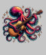 Funny cartoon comic book style octopus playing a guitar ai art.