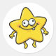 Bright yellow cartoon star character with a goofy smile, crossed eyes, and playful expression on a dark background. This cute and funny illustration features a shiny star mascot with small arms and legs, perfect for kids designs, stickers, emojis, posters, T-shirts, and digital content. Ideal for themes of happiness, fun, imagination, cartoons, humor, space, stars, playful characters, and cheerful graphic design.